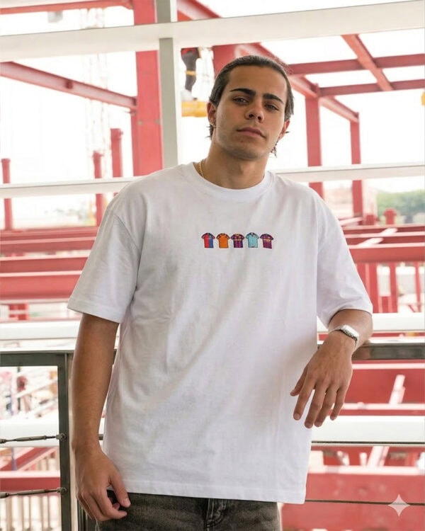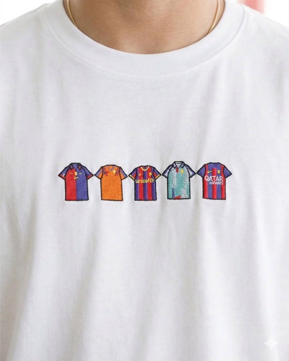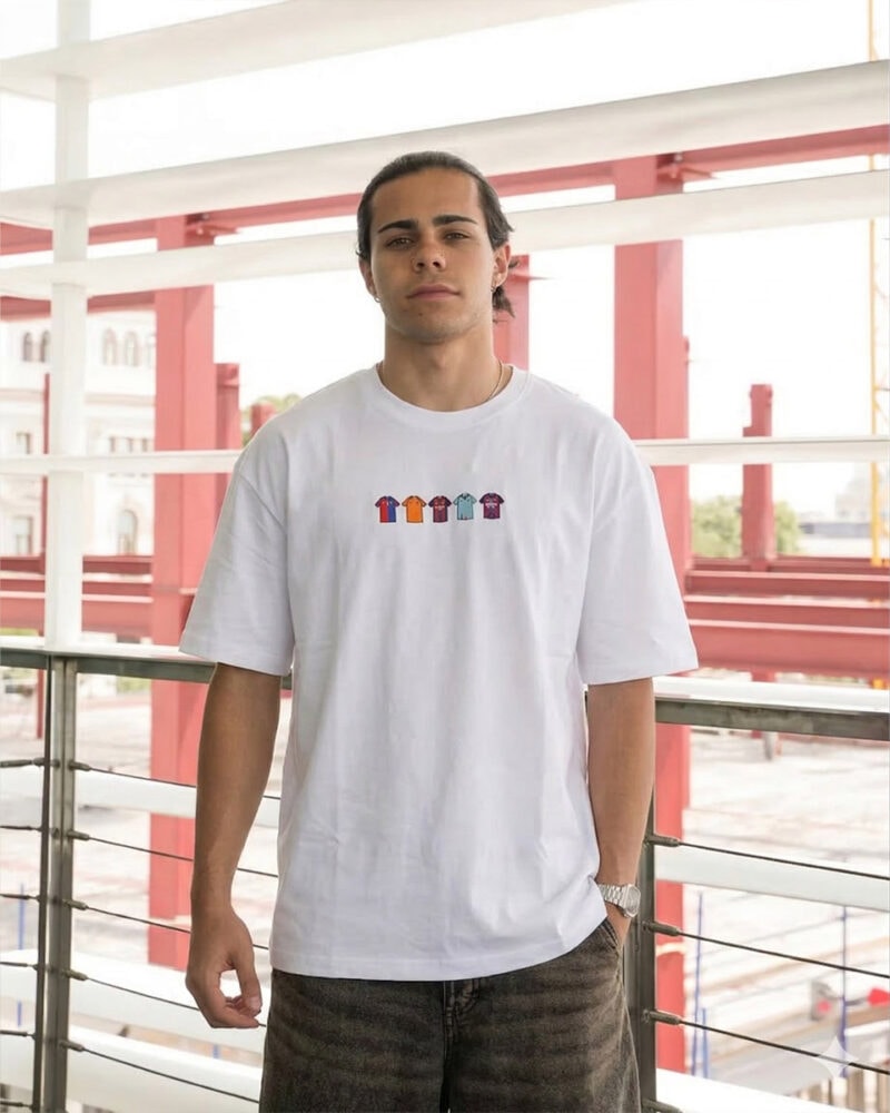 Camiseta oversize blanca con 5 bordados de alta calidad que repasan la historia del equipo catalán.