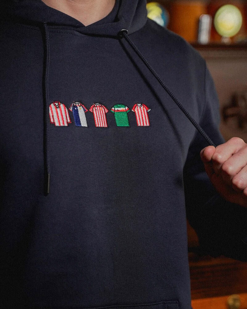 Tenemos la sudadera perfecta para ti. Si eres un verdadero fan, sabrás a qué año pertenece cada detalle bordado.
