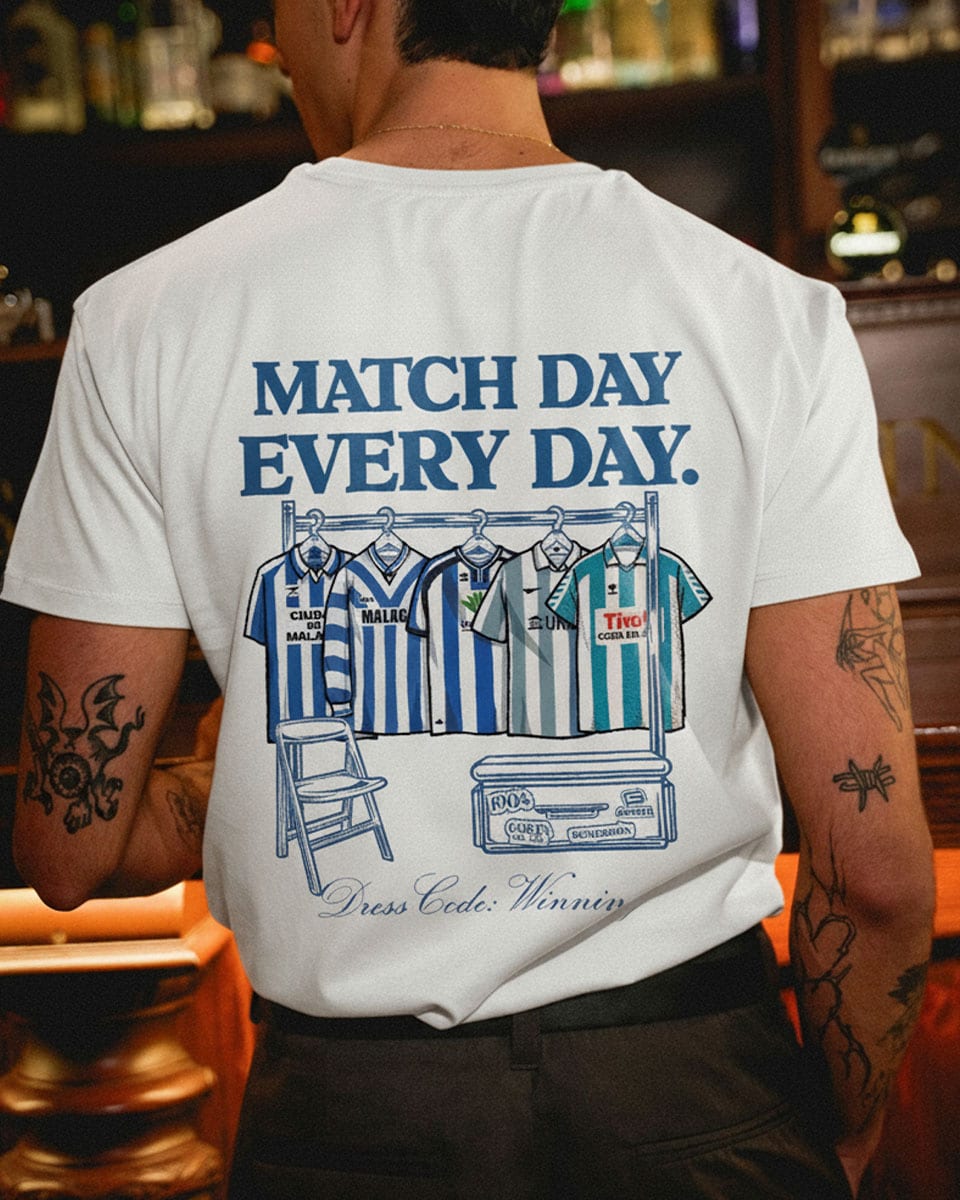 Cotton ‘Matchday Boquerones’ T-shirt with a retro hanger graphic that celebrates the club’s history through its shirts in white.